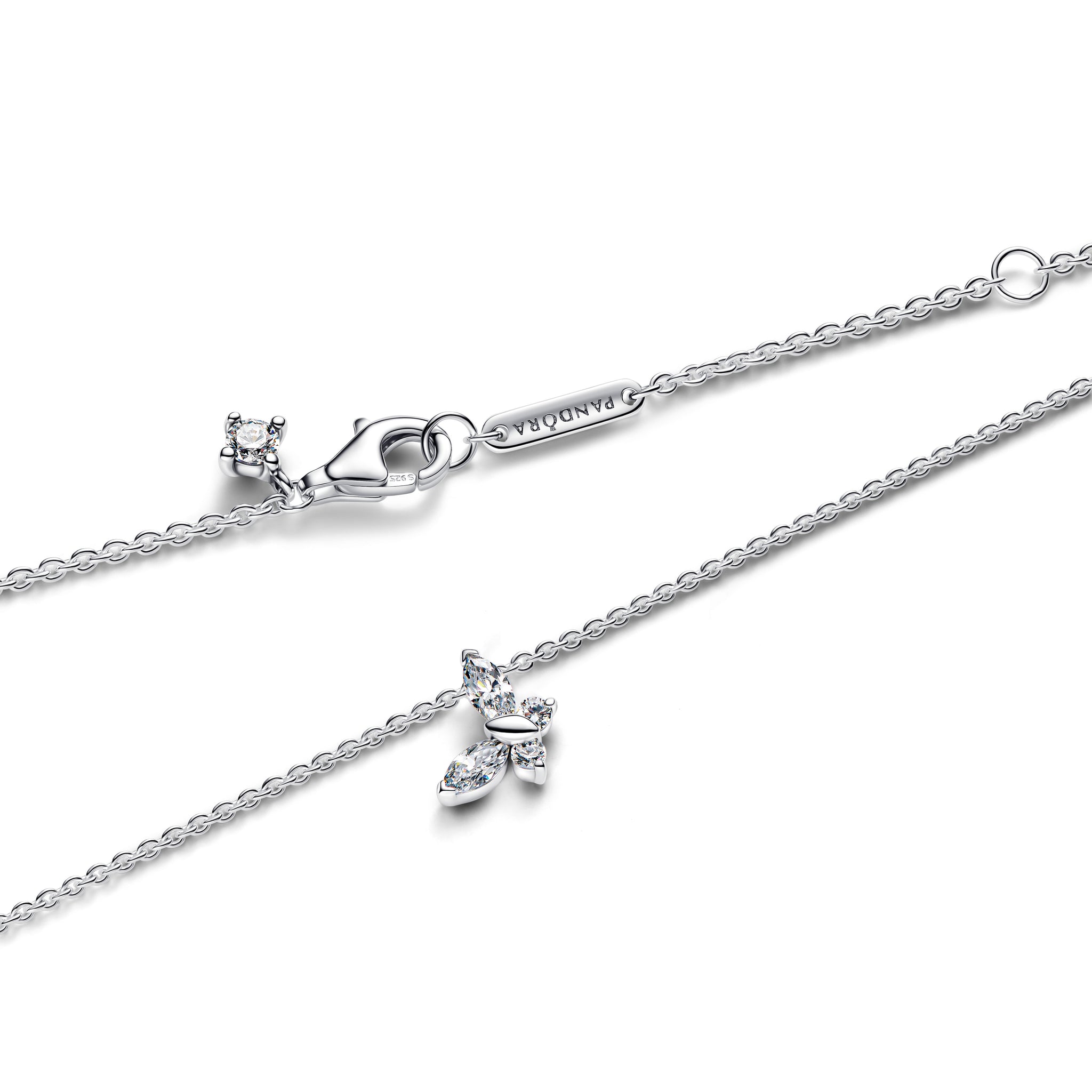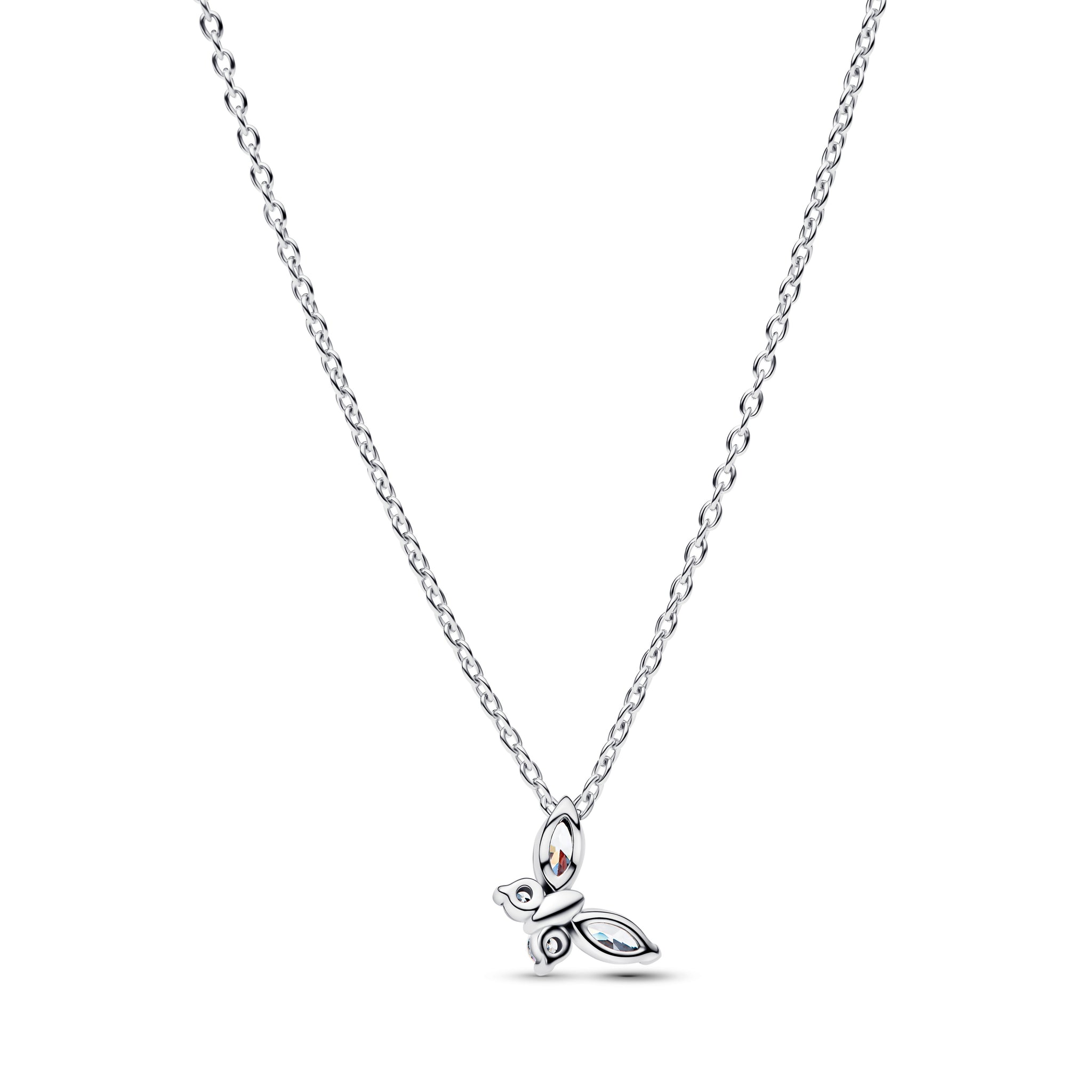Spread your wings and transform your look with this sterling silver necklace. Set with clear marquise-cut and round brilliant-cut man-made crystals, a butterfly gracefully dangles from its chain.